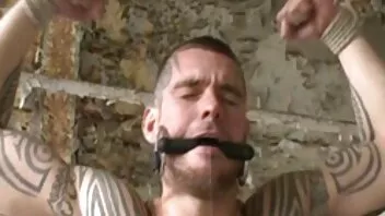 Los perros jóvenes enojados azotaron a un chico e insertaron su puño en el veteranas culiando culo de él